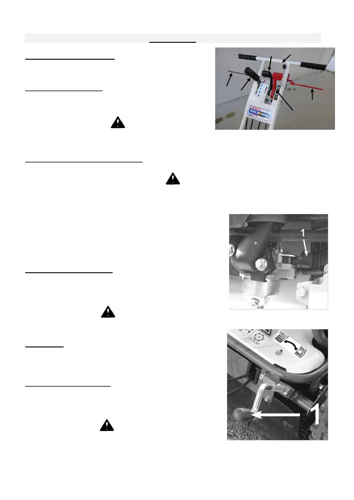 Push the 2 action lever (6, figure 2), then pull the blade clutch lever