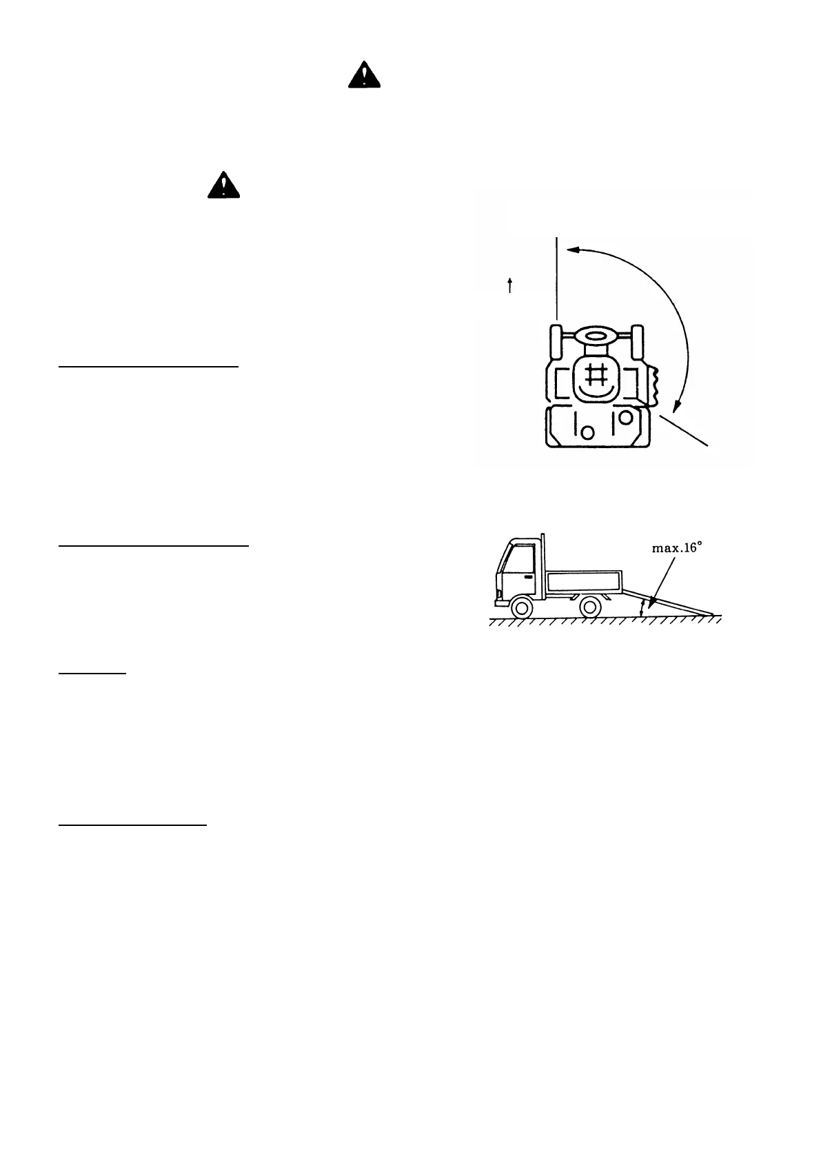 the parking brake, and close fuel cock. Fix the machine to the truck with roap