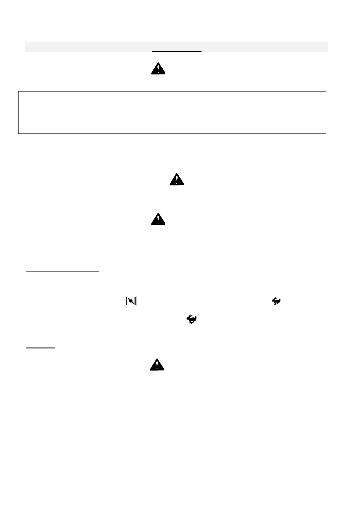 Check that the cutting blade is disengaged, height of cut lever in transport position and speed
