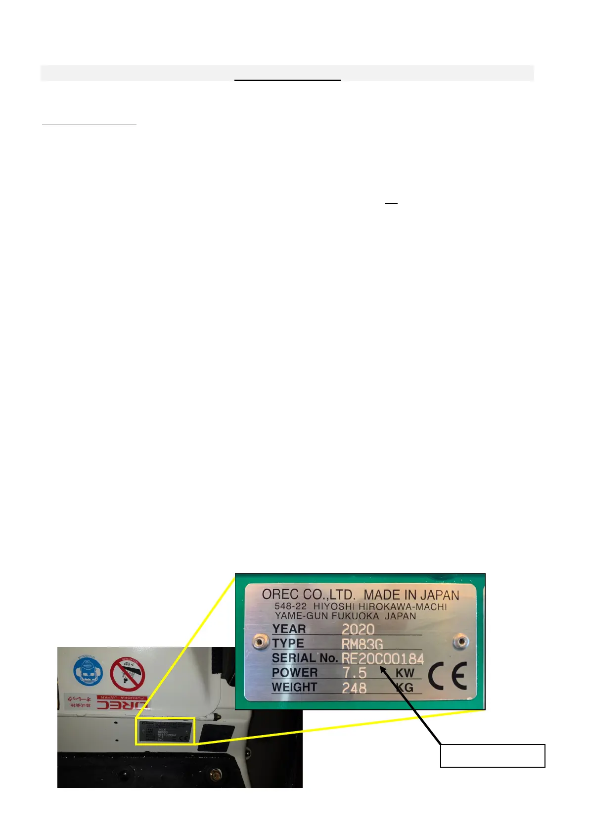 SERIAL NUMBER (refer to the pictures herein) :.........................