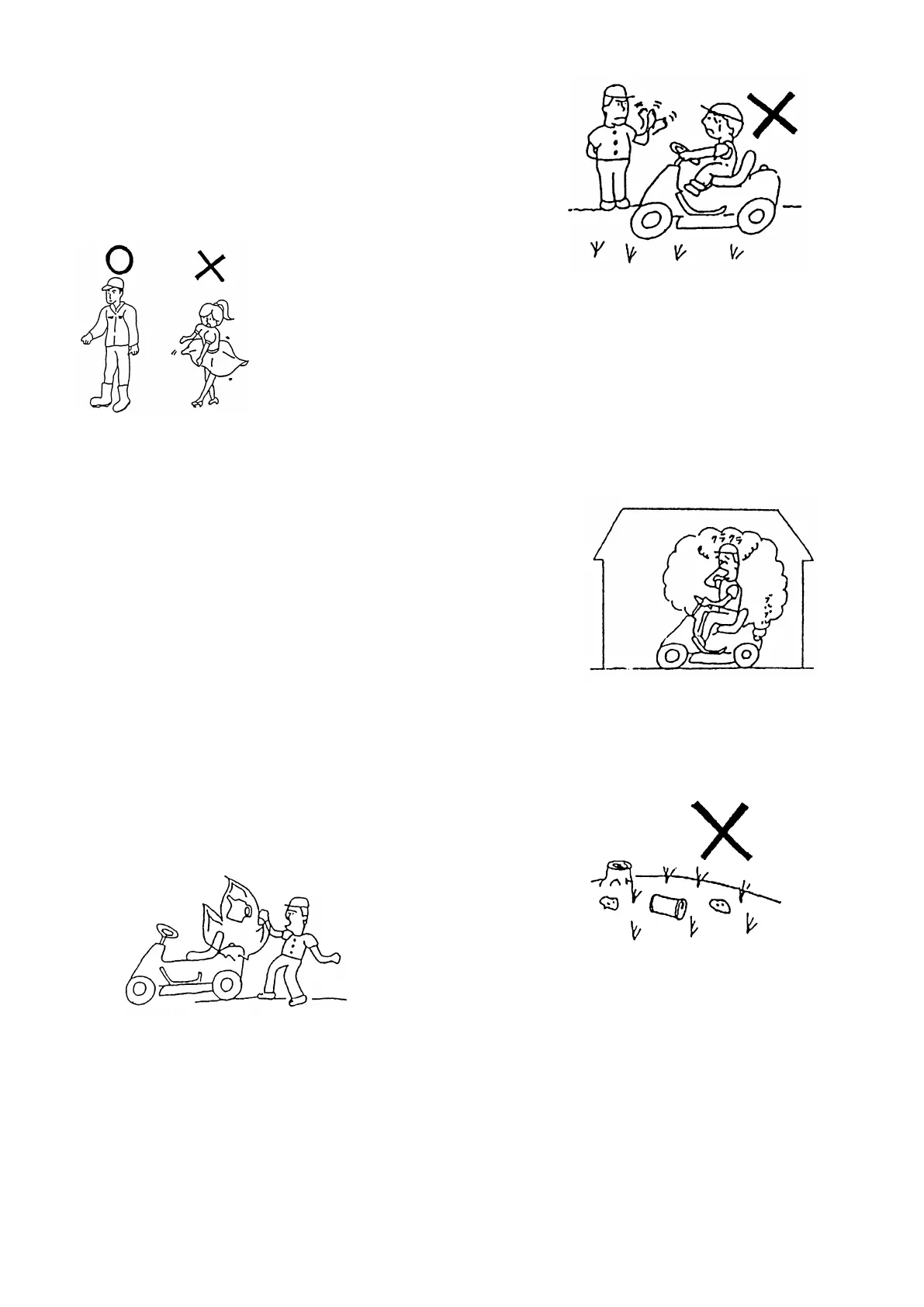 • Never stop or start roughly when working on a slope. Never