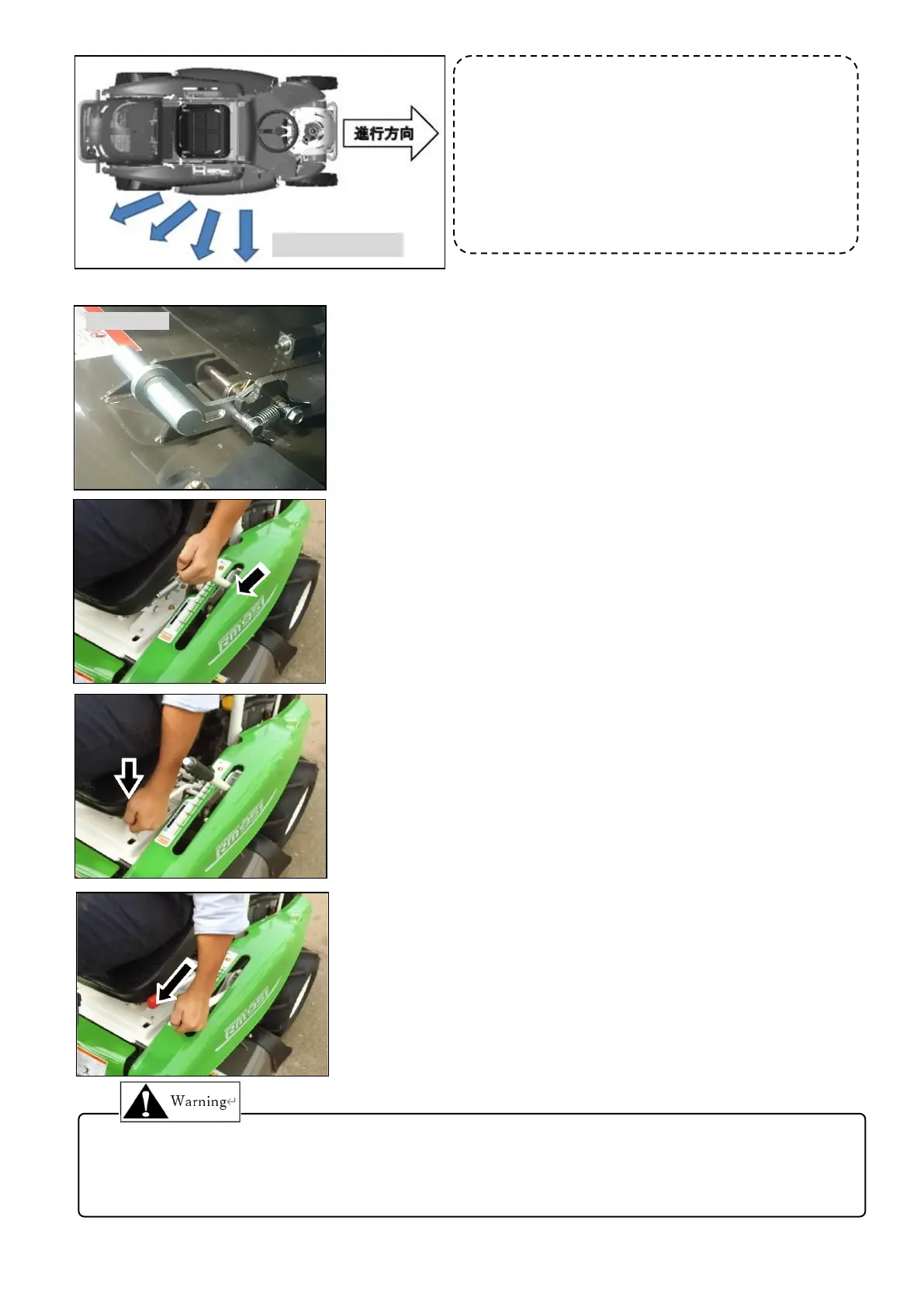 1) Continuing to work with grass accumulated around the engine may cause a fire or engine seizure.