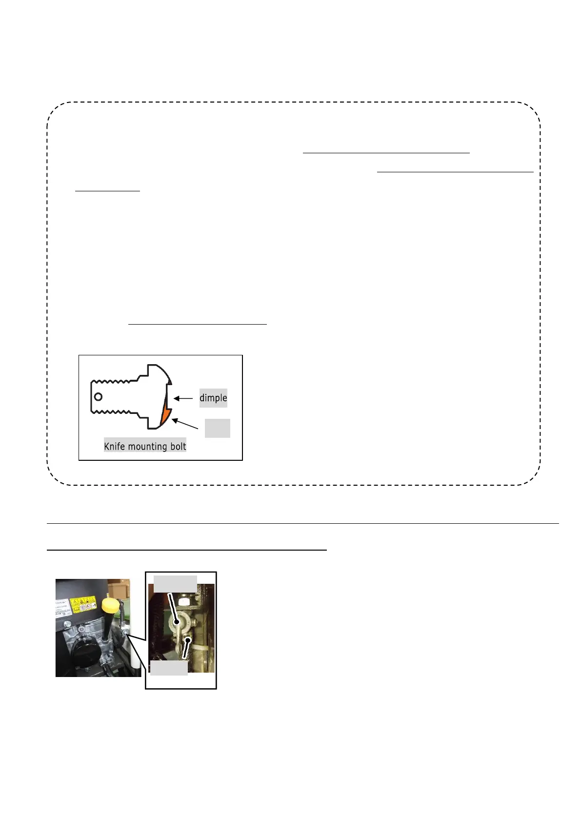 6) If the gauge (dent) on the back of the knife mounting bolt is worn, replace it.