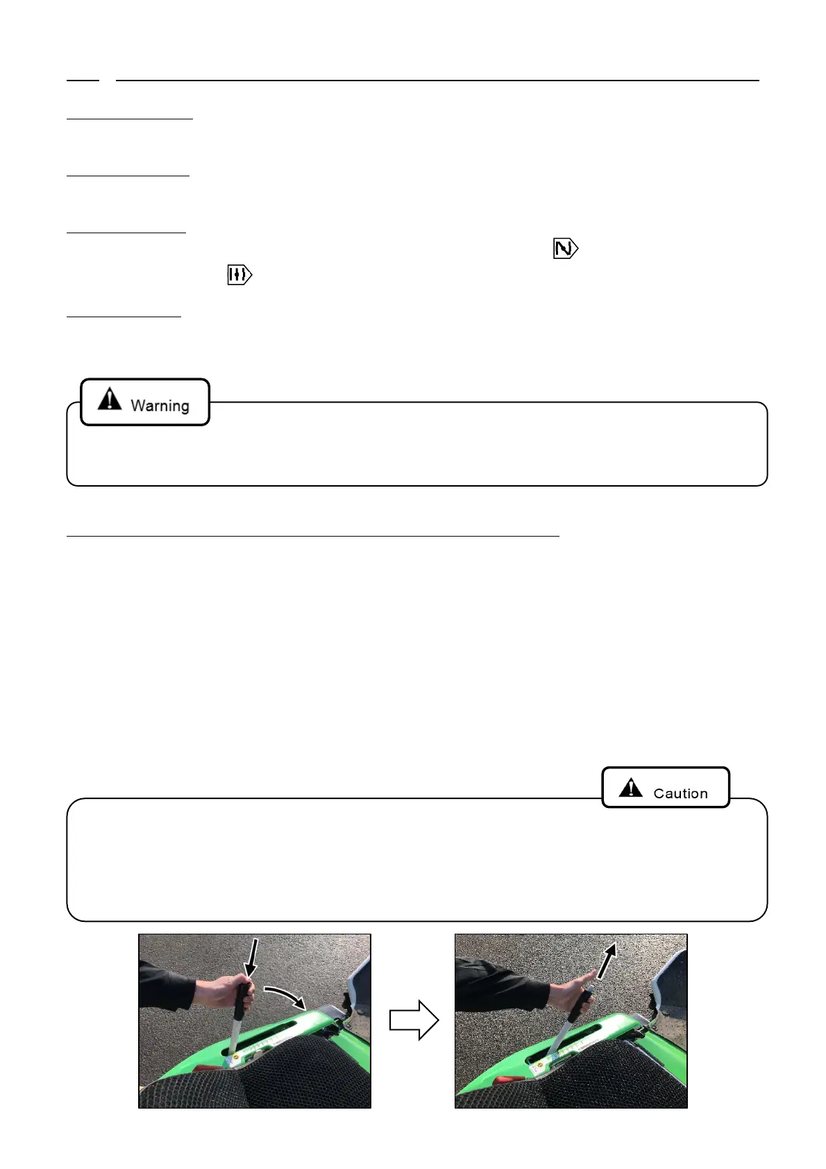 cutting height adjustment lever to the "move" position when entering, leaving, or moving
