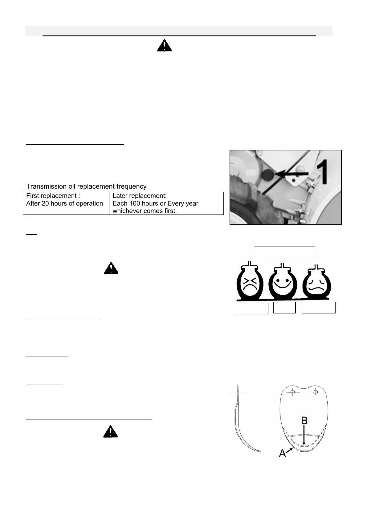 Transmission oil level : check by the plug (1 Figure 13). Oil level should appear