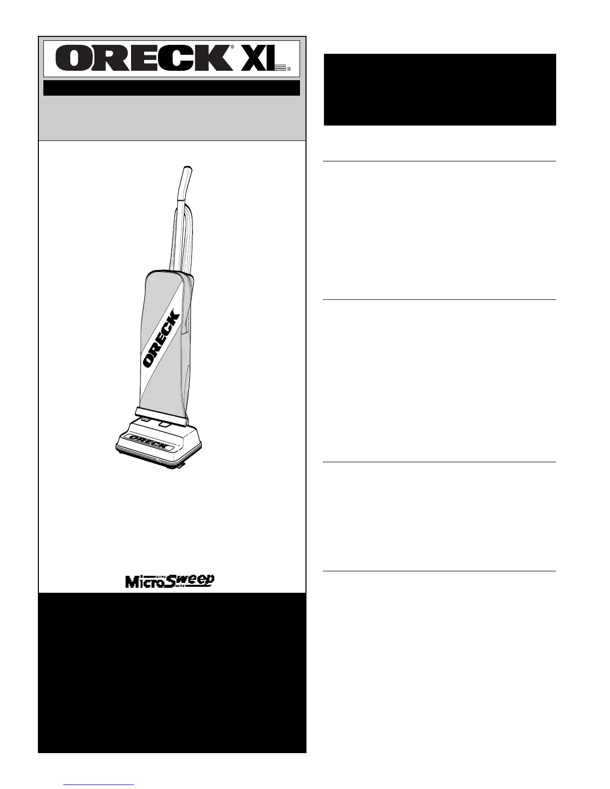 Votre aspirateur ORECK est un produit utilisant des mécanismes précis.