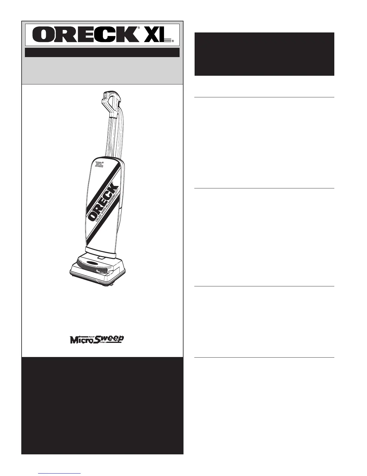 Su aspiradora ORECK es un producto de diseño preciso. Los cojinetes