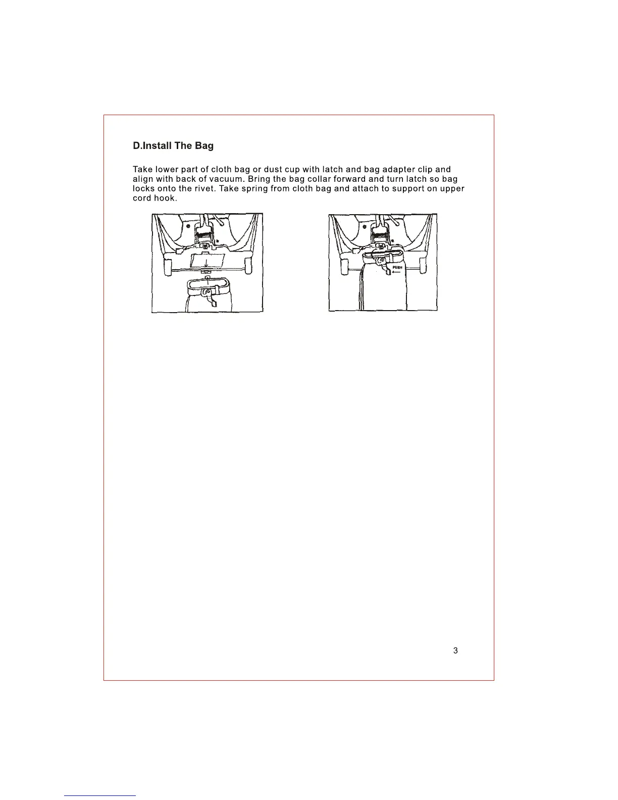 Oreck OR101 - Install the Bag