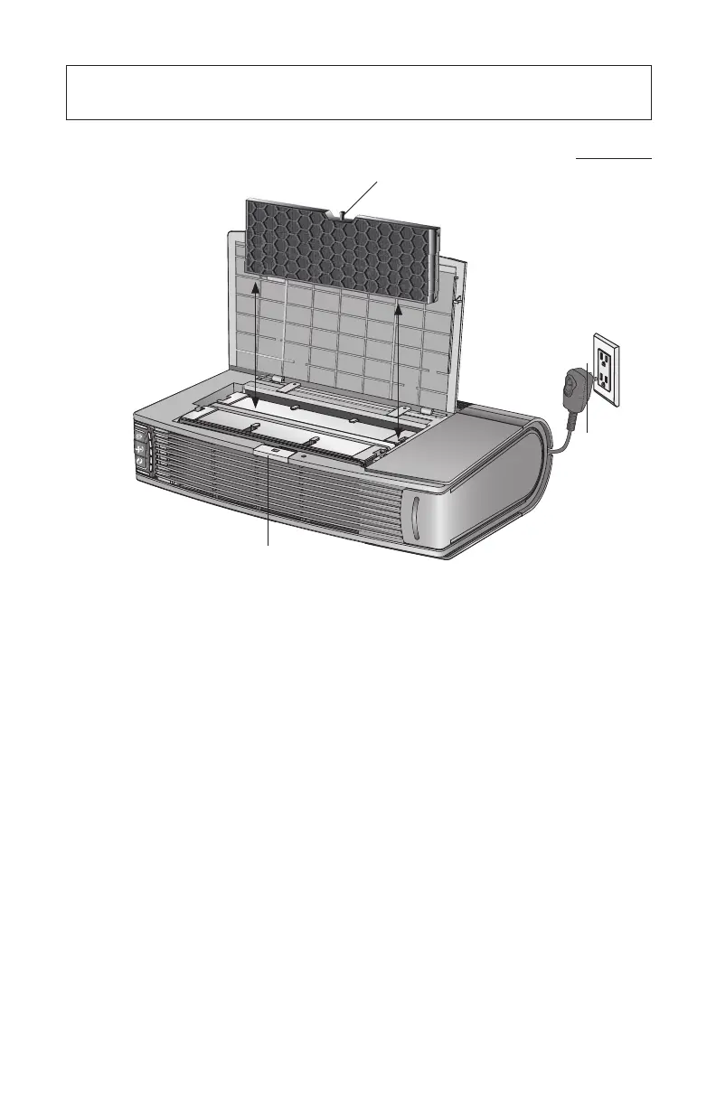 1. Débrancher le purificateur d'air et le renverser sur son côté, le couvercle à charnière sur le dessus.