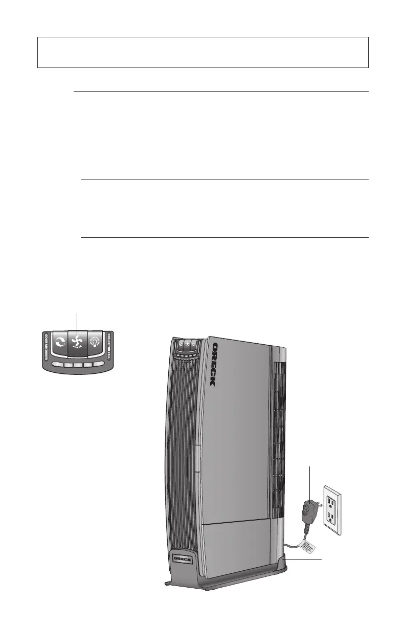 3. Press the motor speed/power button until you reach the desired air cleaning speed.