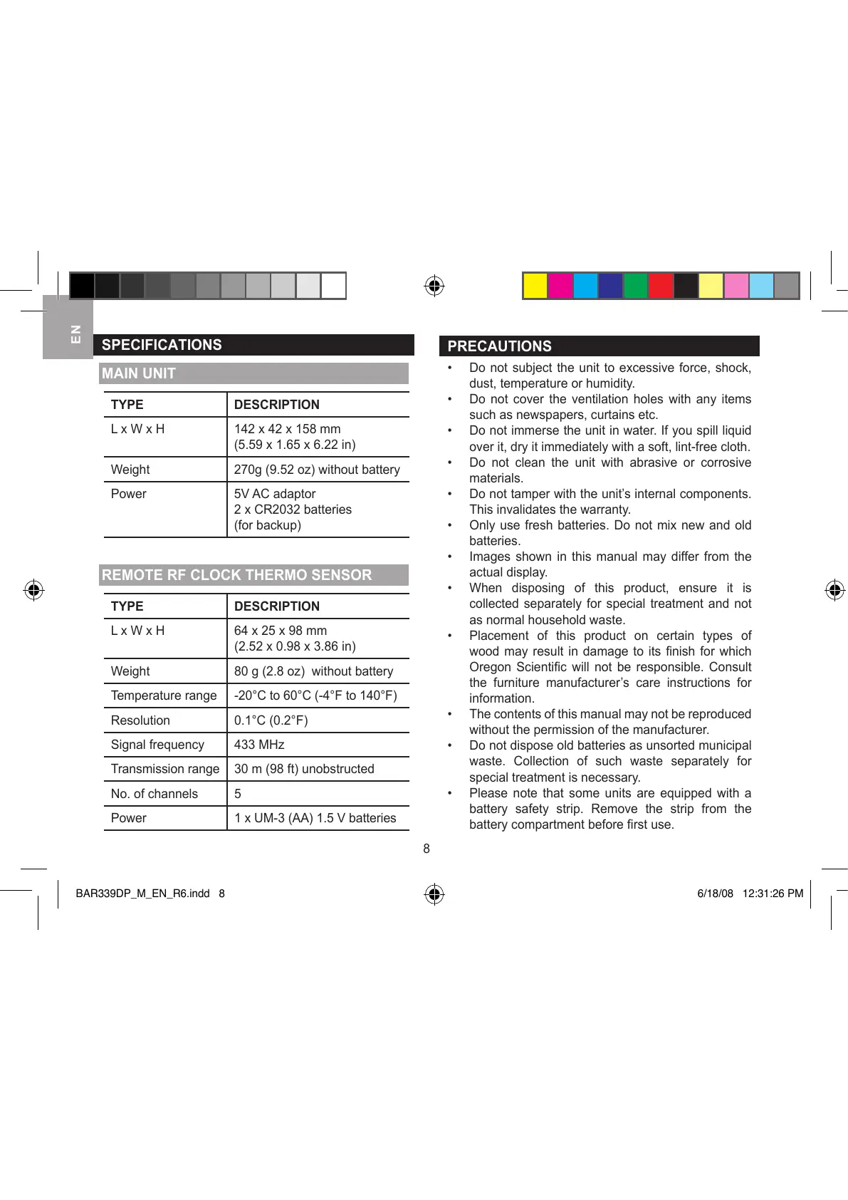 Oregon Scientific will not be responsible. Consult