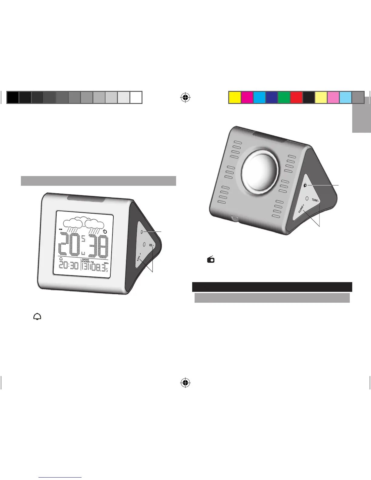 del reloj; subir / bajar el volumen de la radio