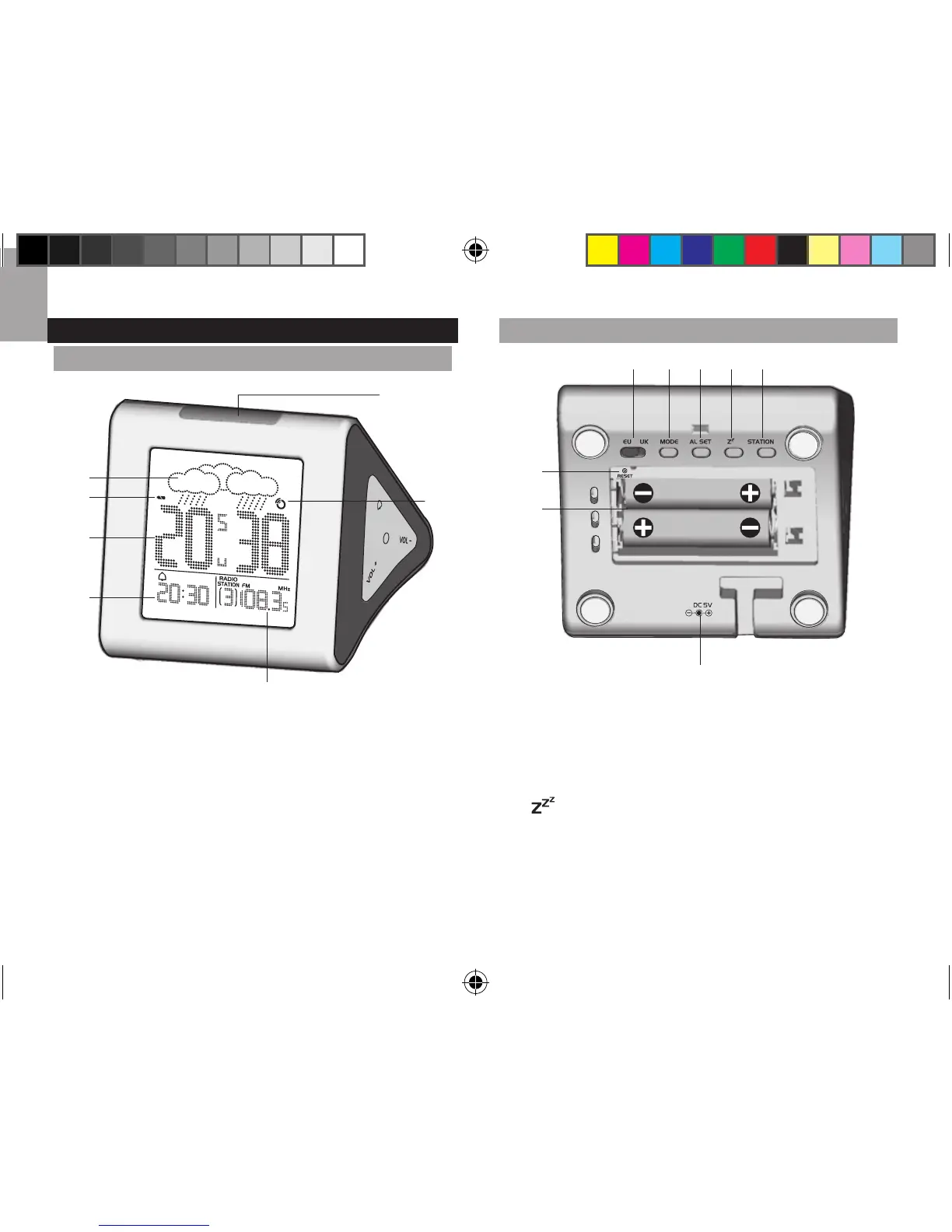 1. SNOOZE / LIGHT: Snooze alarm; aktivera