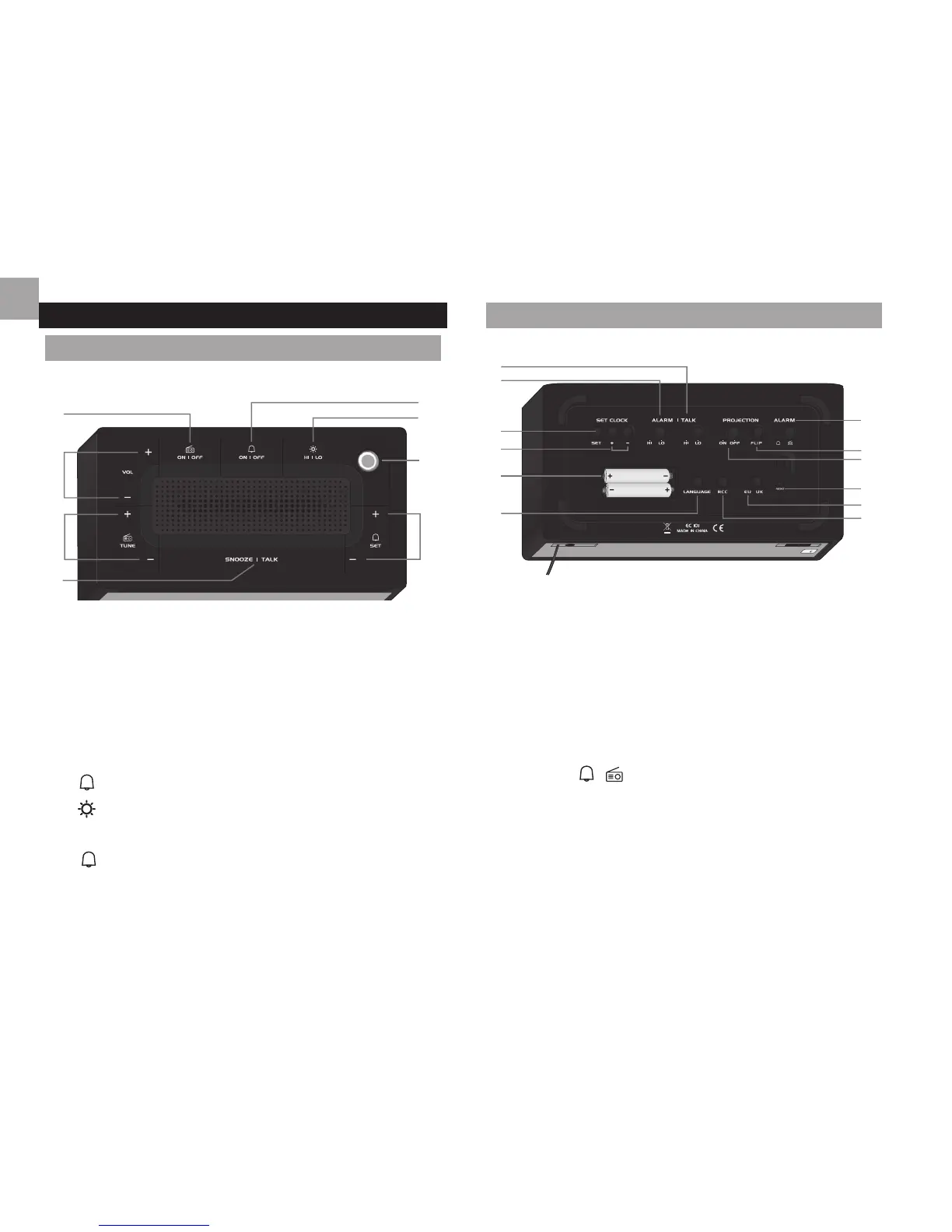 4. SNOOZE / TALK: de tijd weergeven; sluimerfunctie