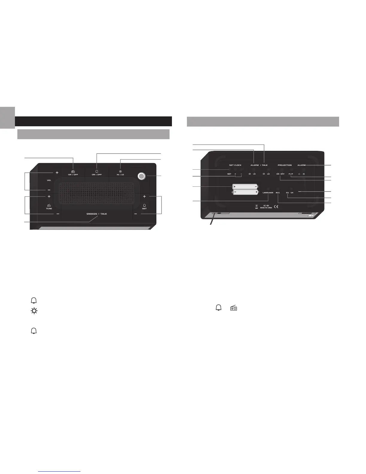 3. 调谐+ / -︰在收音机模式下自动搜索/调整无线电频