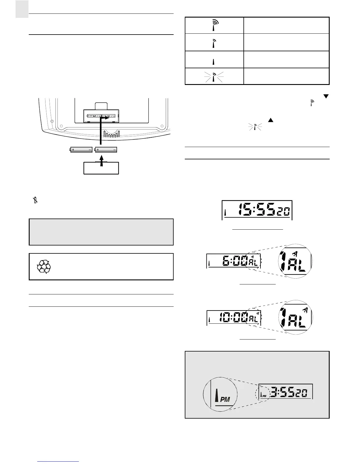 Press CLOCK/ALARM KEY to alternate the top line between the