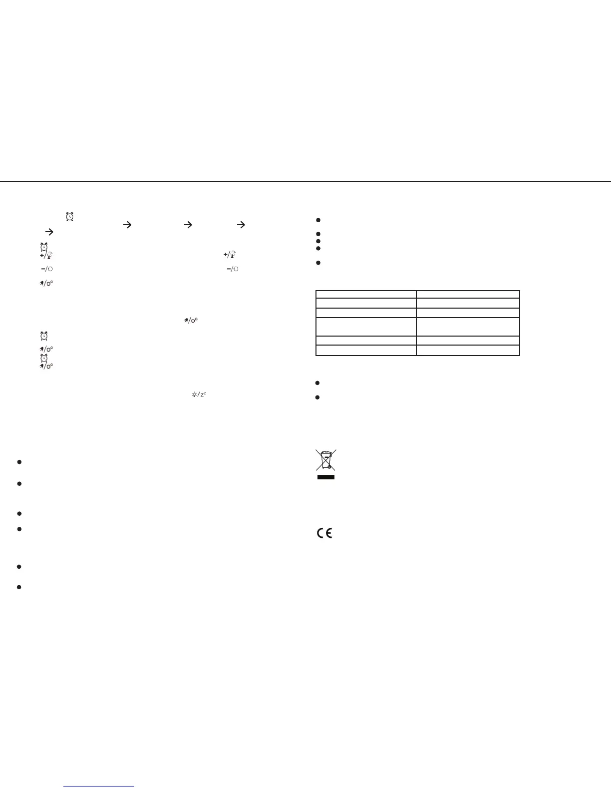 mode, press to turn on/off alarm. Press and hold to enter time