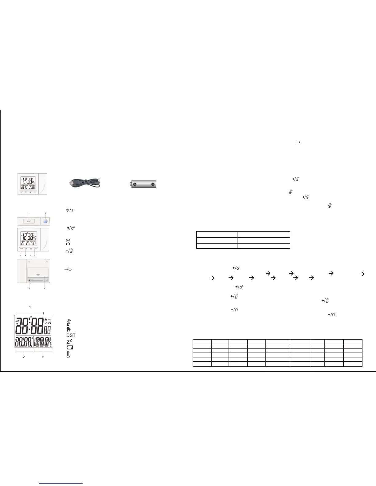 Datum, die Uhrzeit und den Wochentag an und verfügt über eine Weckfunktion. Die