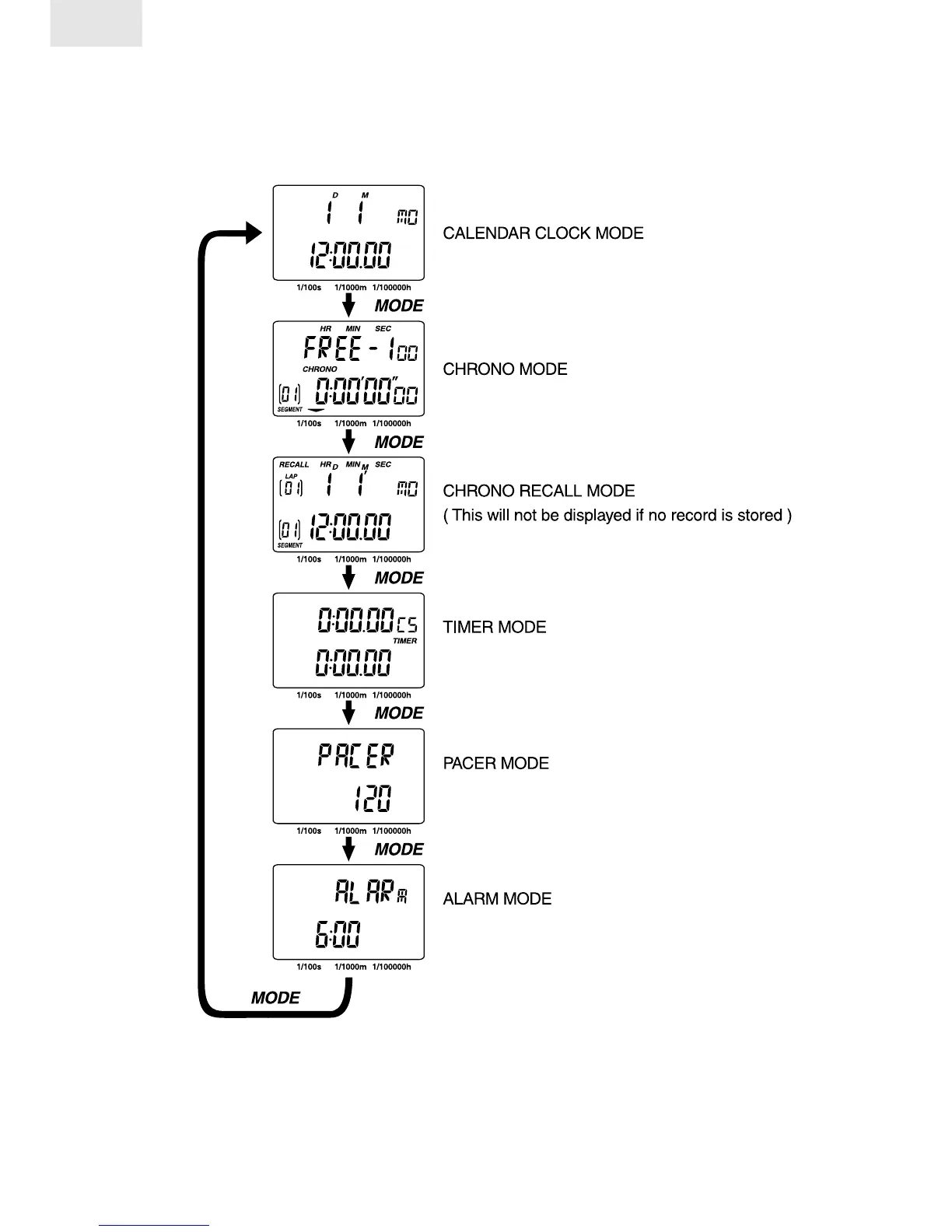 Oregon Scientific SL928D - Stopwatch Modes; Calendar Clock Mode; Chrono Mode; Chrono Recall Mode