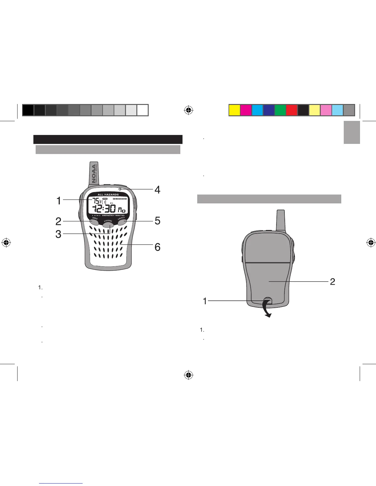Red / Green LED indicates radio (on / off) and alert status.