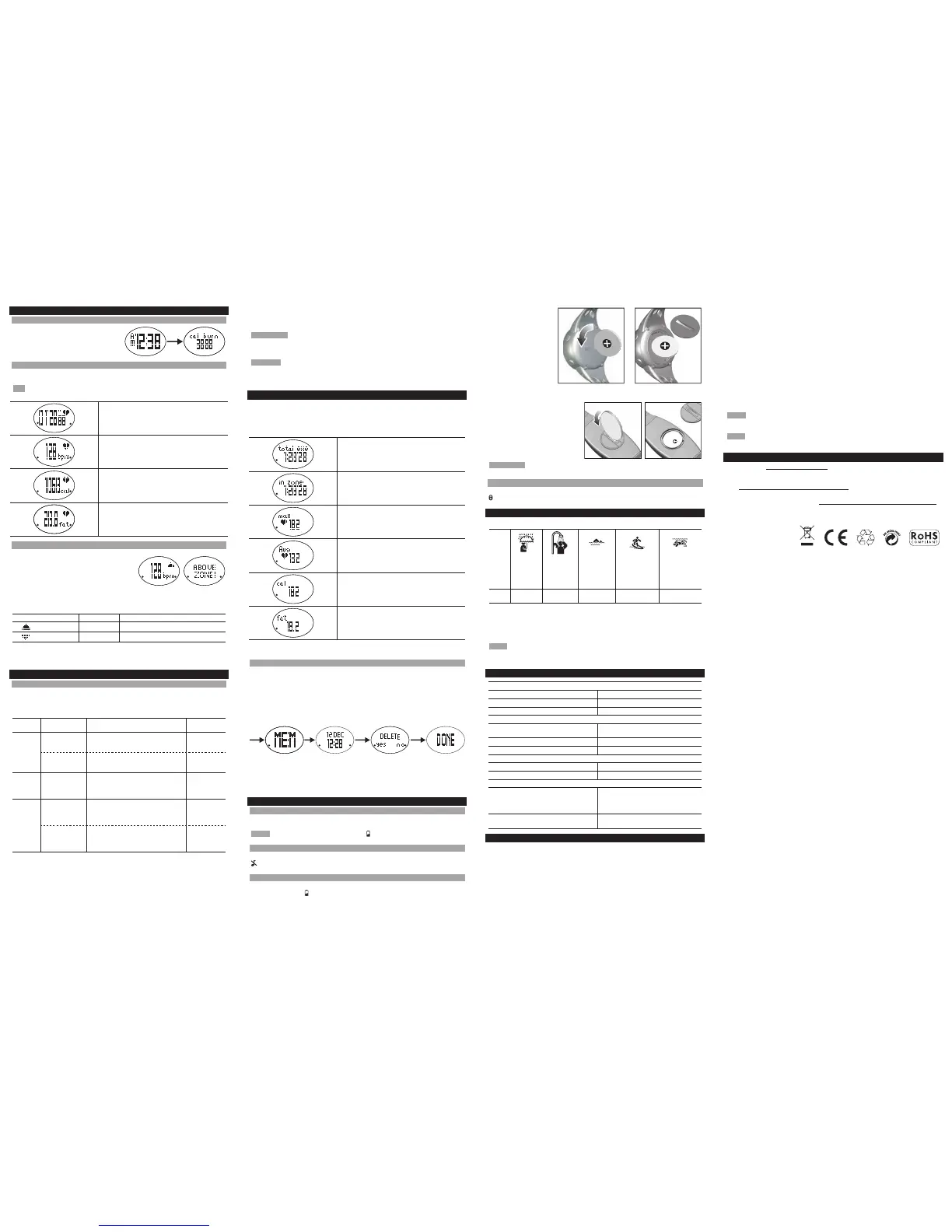 • Avoid pressing the buttons while in the water or during heavy rainstorms, as this may