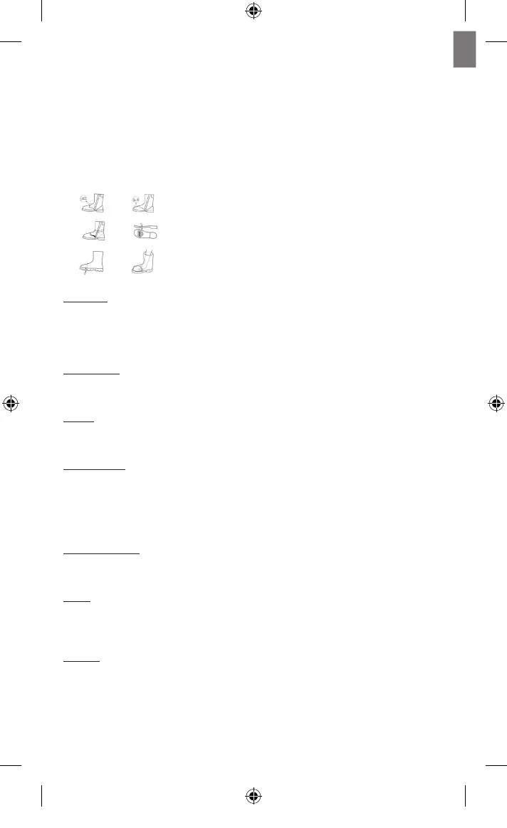 To put on and take o the footwear, always fully undo the fastening systems. Only wear footwear of suitable size. Product which is either