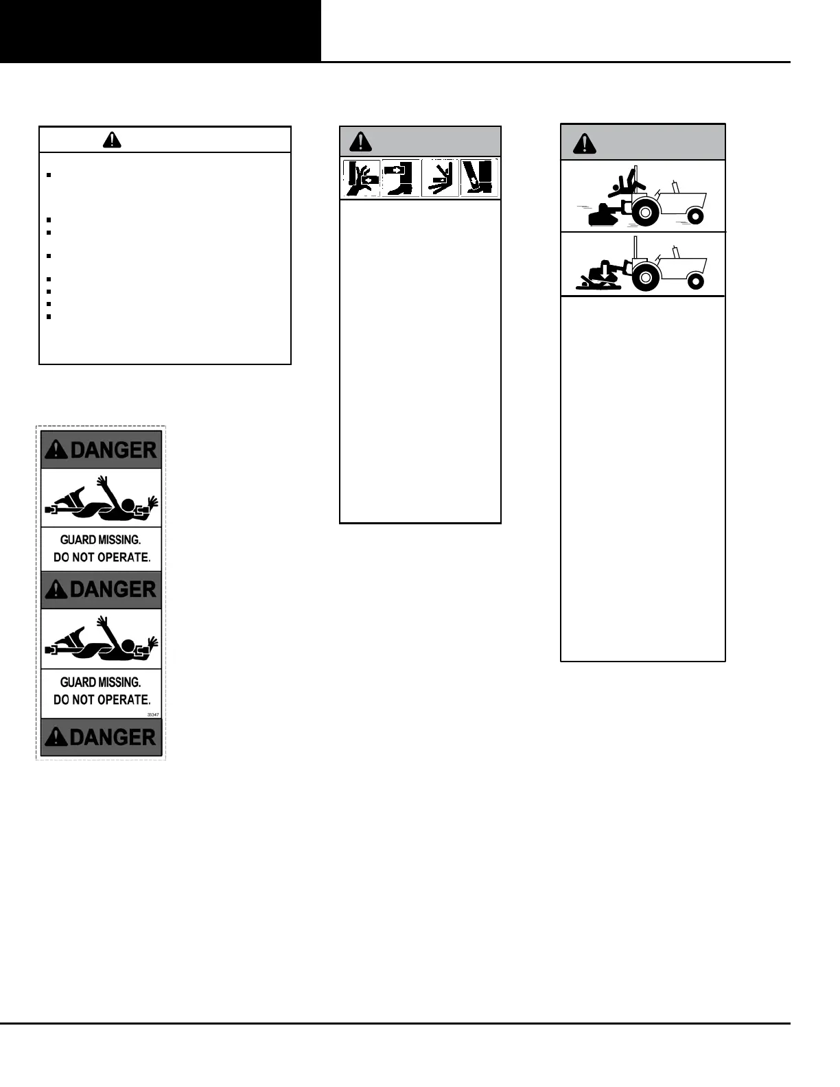 • Keep safety decals clean and visible. Use a clean, damp cloth to clean safety decals.