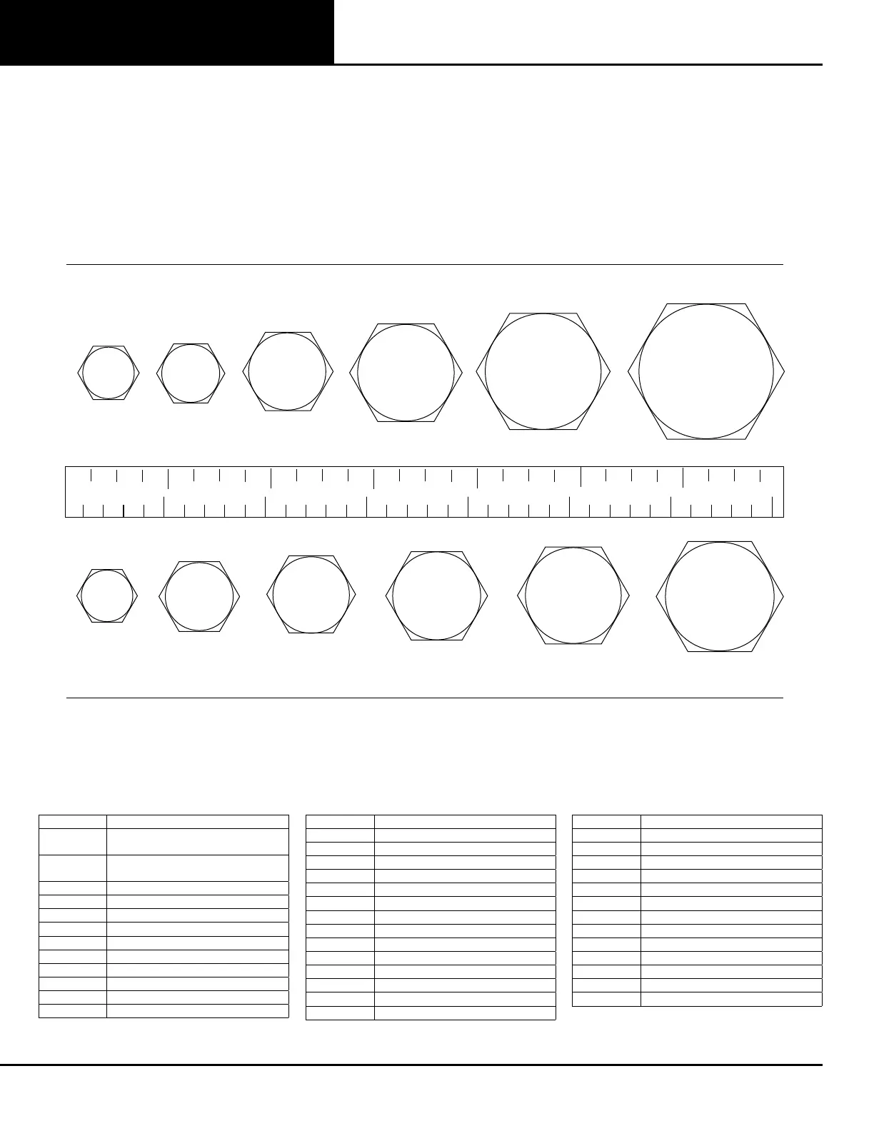 Chart shows bolt thread sizes and corresponding head (wrench) sizes for standard SAE and metric bolts.