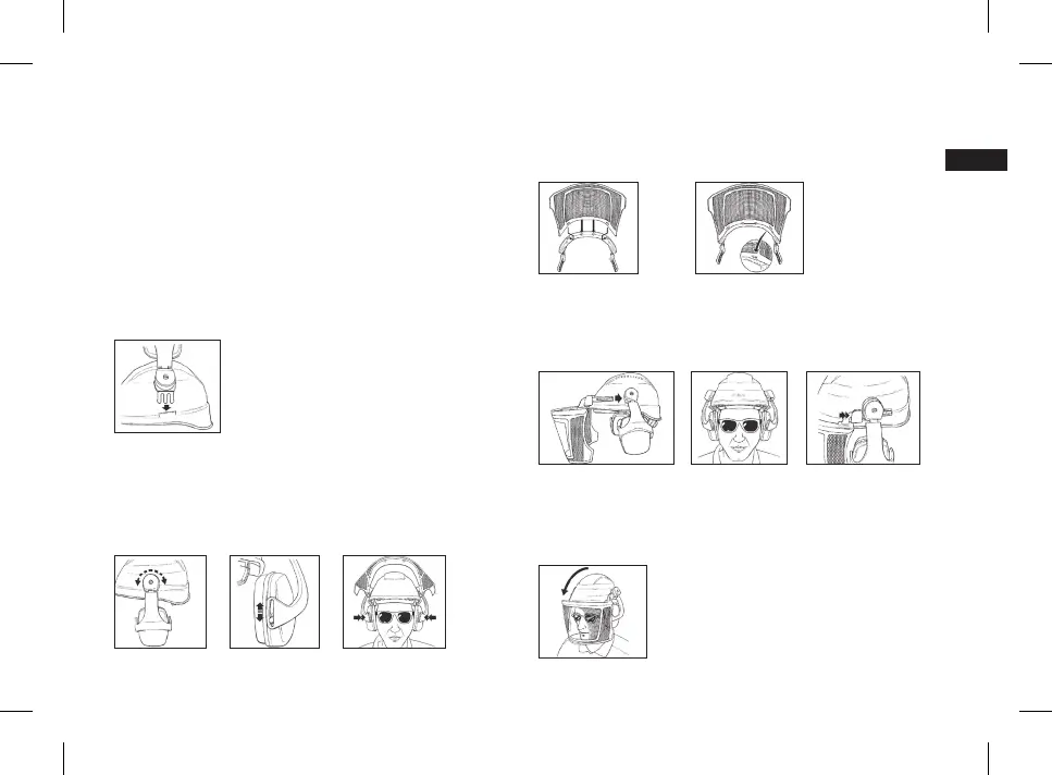 När hörselkåporna snäpps fast på hjälmen, kommer de att rotera 180°.