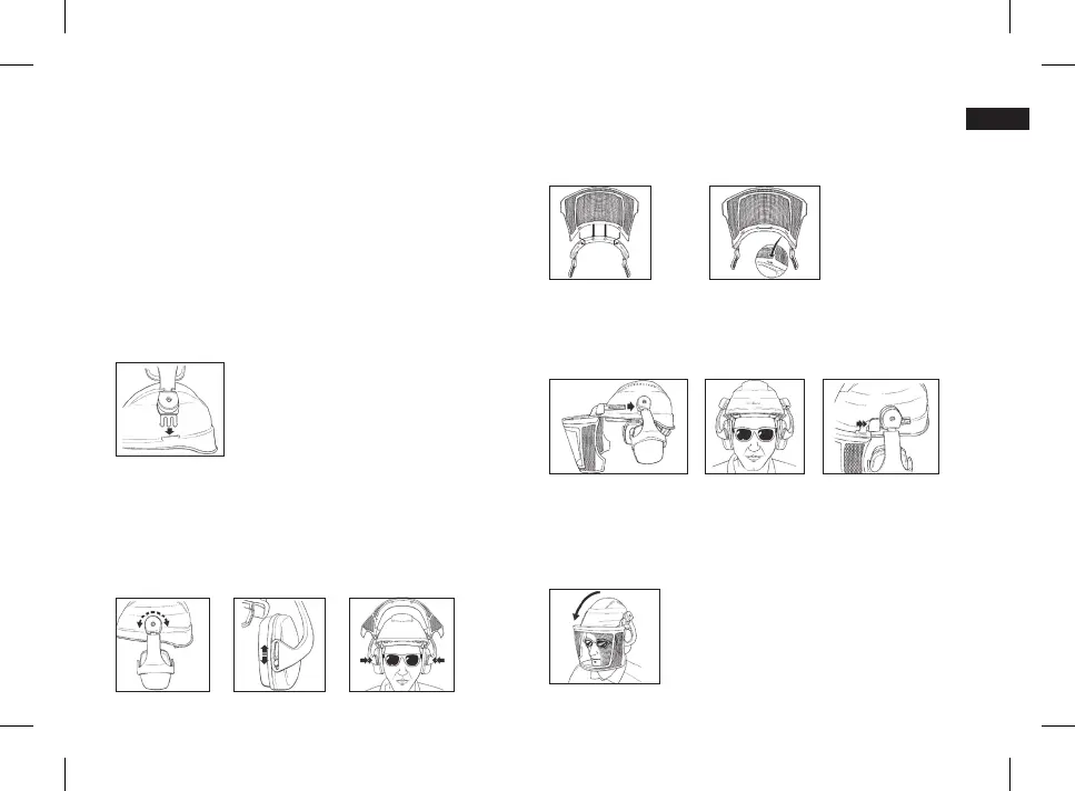 ment sous les charnières du protège-oreilles installé sur le casque, an que celui-ci puisse pivoter. Enfoncez-