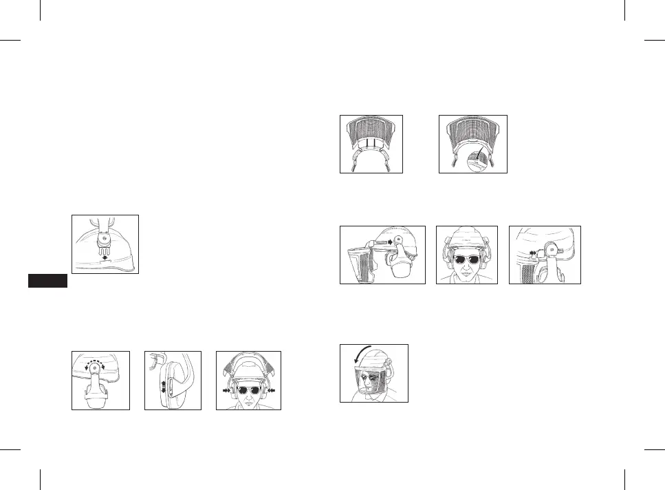 Pritvirtinus ausines prie šalmo, jos pasisuka 180° kampu.