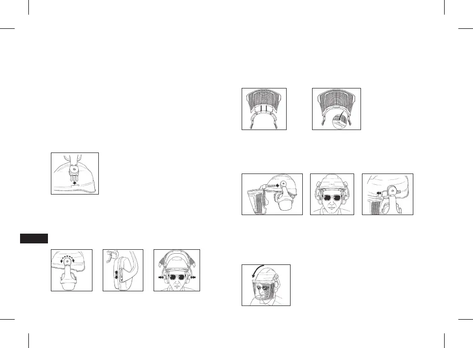 nauszników zamocowanych na hełmie, aby umożliwić obracanie nauszników. Docisnąć je na tyle, aby