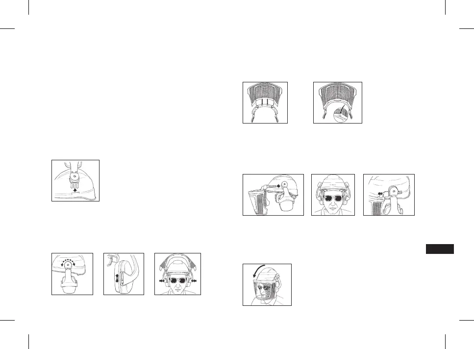Depois de os protetores auditivos terem encaixado no capacete irão rodar 180º. Posicione os protetores