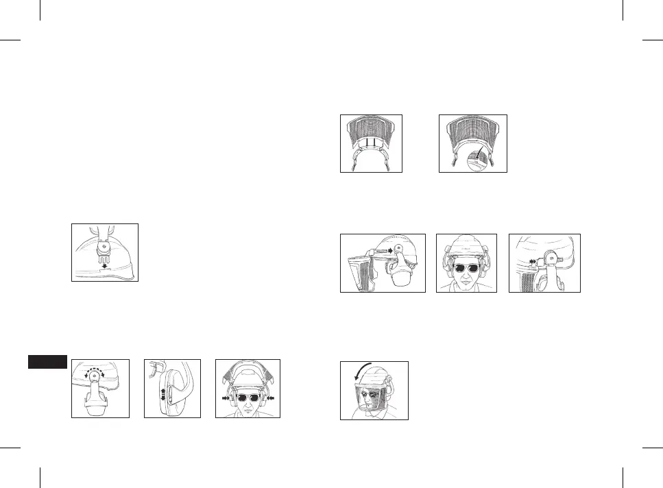 antifoanelor montate pe cască, astfel ca antifoanele să poată rotite. Împingeţi braţele vizorului sucient