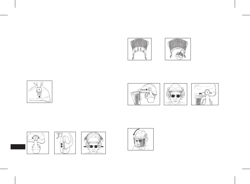 mestu. Pri nadevanju in odstranjevanju čelade mora biti zaščita za sluh v navpičnem položaju. Uporabnik