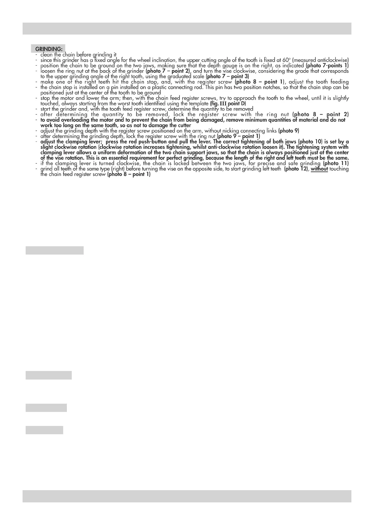 N.B. If the chain depth gauge is too high with respect to the tooth (usually after 2/3 grinding operations), lower it using a flat file (photo