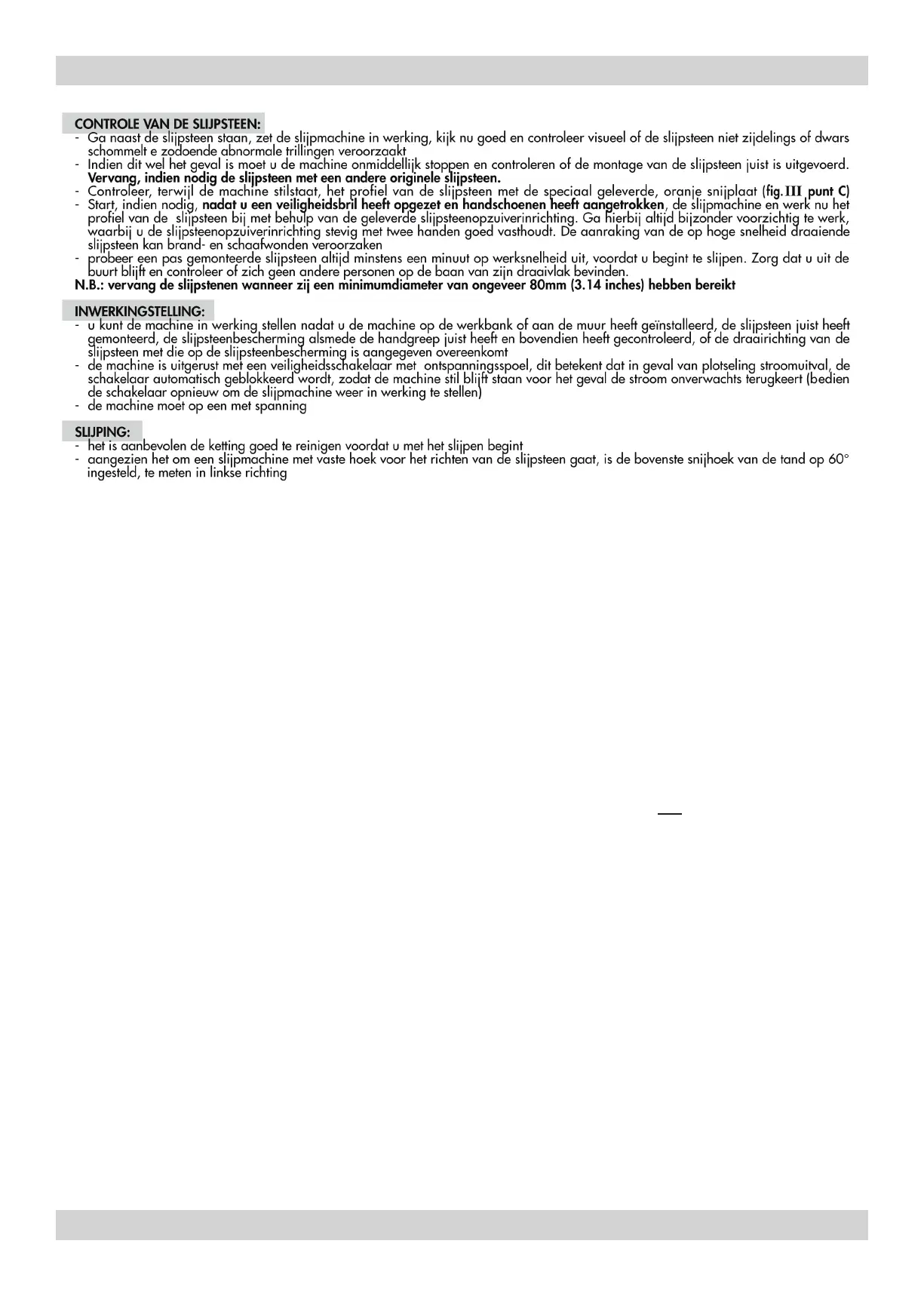 N.B.: vervang de slijpstenen wanneer zij een minimumdiameter van ongeveer 80mm (3.14 inches) hebben bereikt