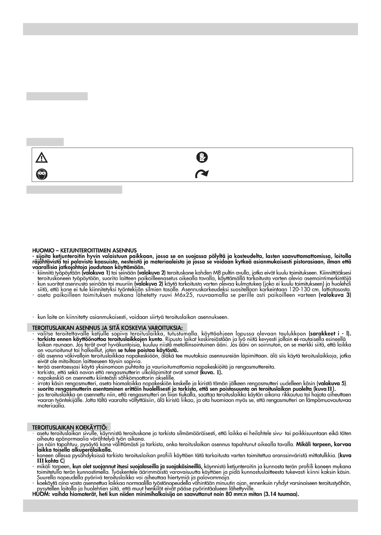 Tämä symboli osoittaa koneen pyörimissuuntaa