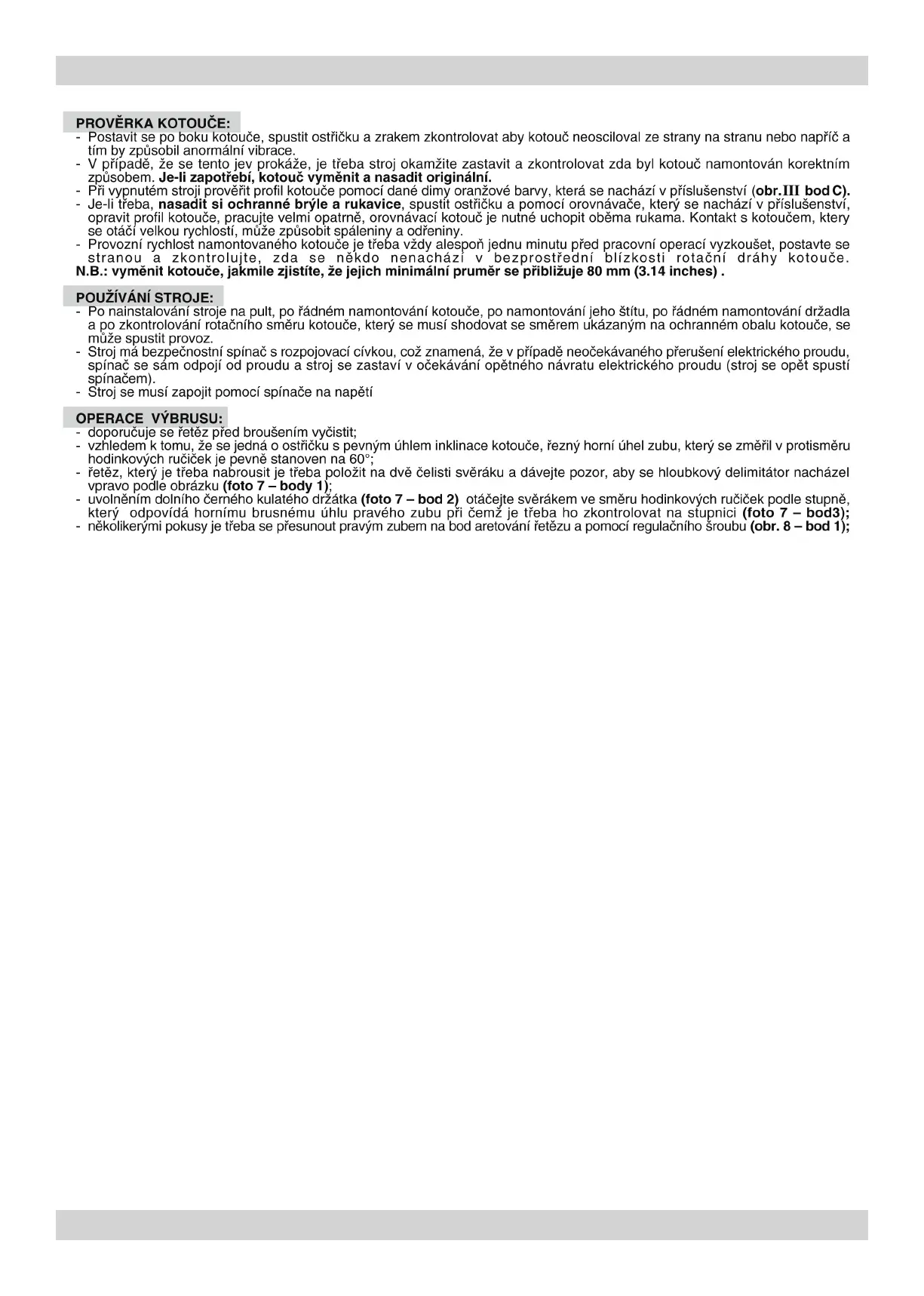 N.B.: vymûnit kotouãe, jakmile zjistíte, Ïe jejich minimální prumûr se pfiibliÏuje 80 mm (3.14 inches) .