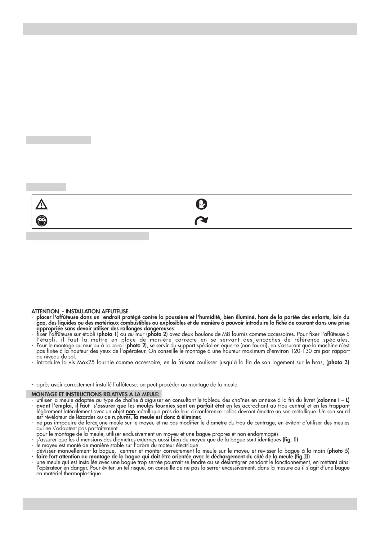Ce symbole indique le sens dans lequel l’outil (meule) doit