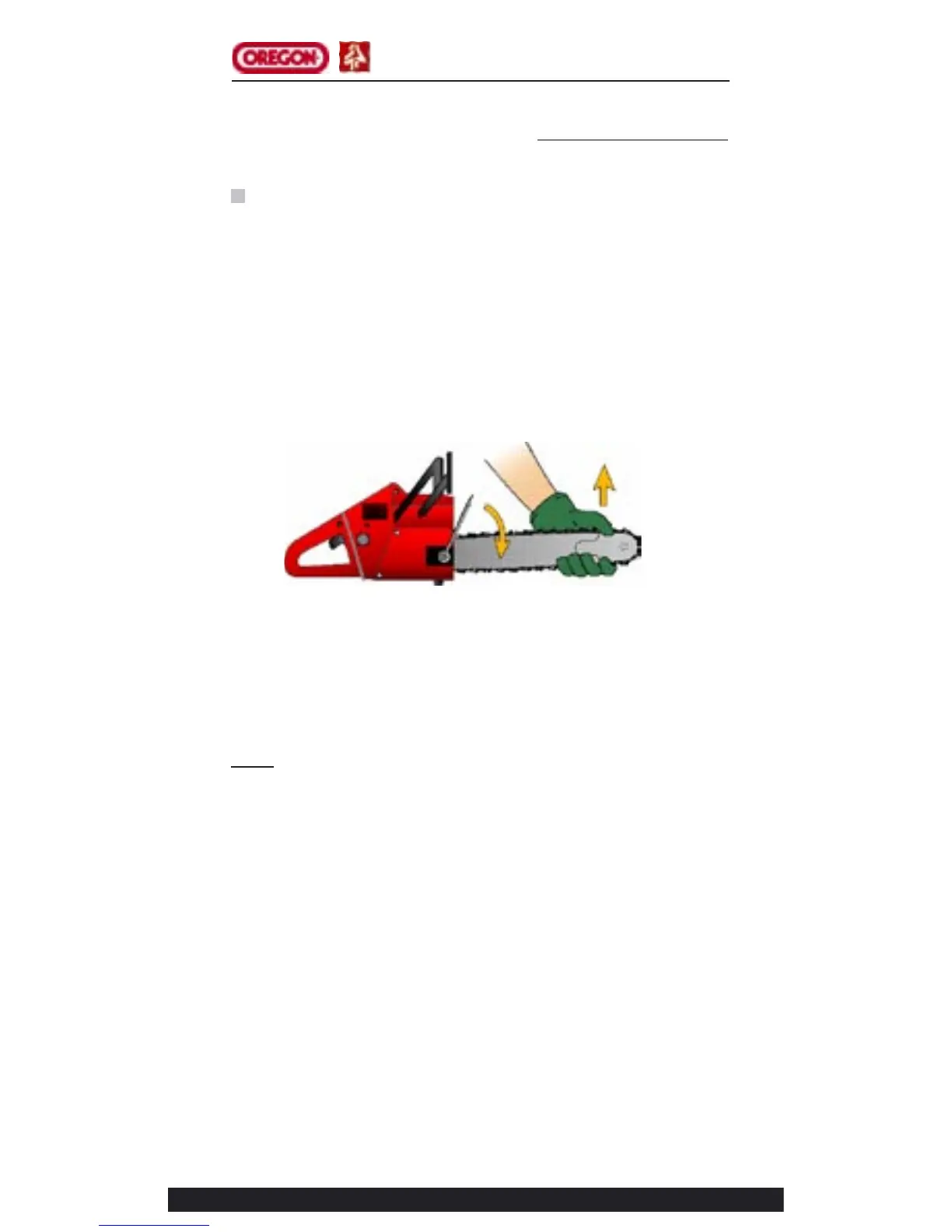 from the engine to the bar’s tip. Chain should feel snug but still pull