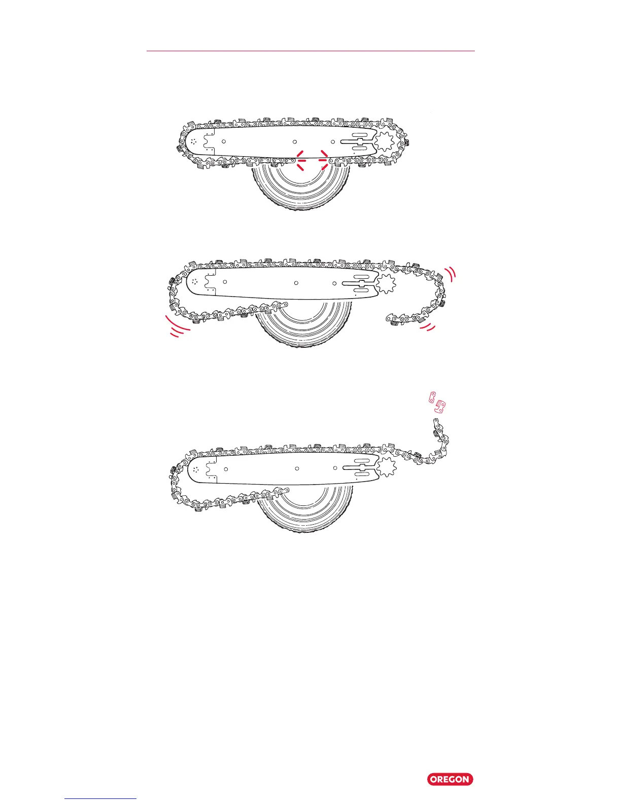 2. After a saw chain break, the “free” end of the saw chain begins