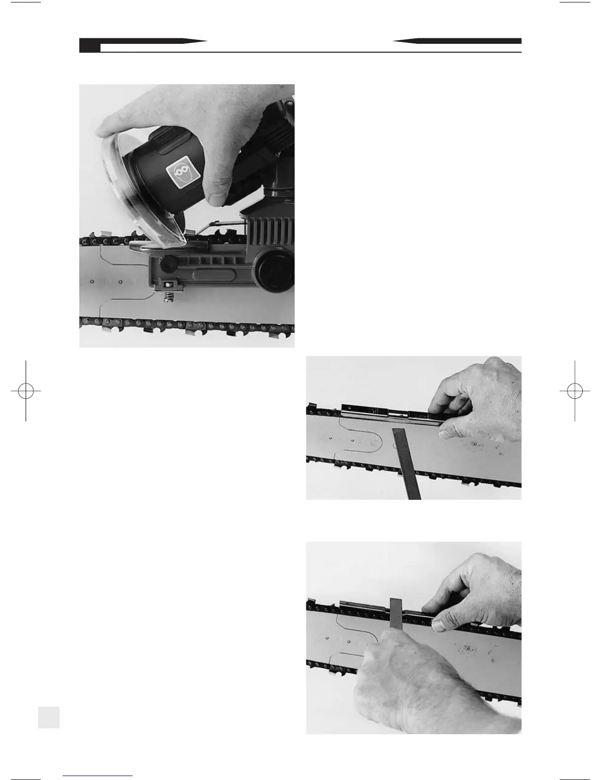 11. Con precaución, tire de la cadena de sierra