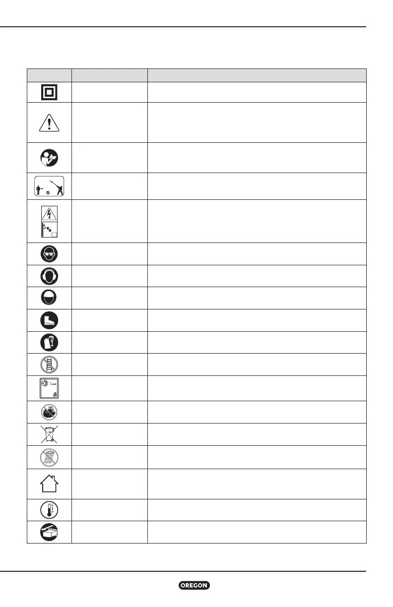 Poniższe symbole i etykiety są umieszczone na podkrzesywarce, akumulatorze i ładowarce.