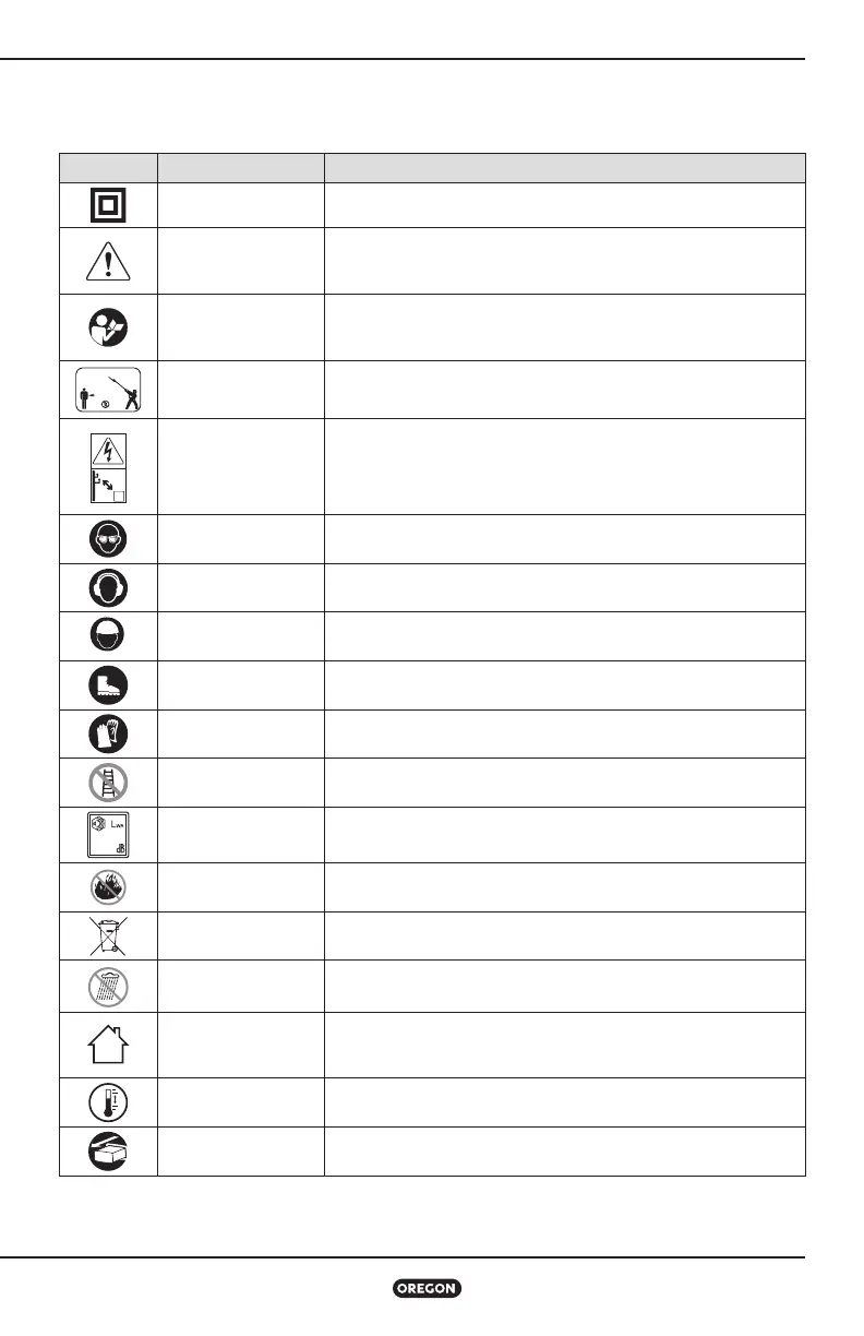 Estes símbolos e rótulos aparecem na podadora de altura, na bateria e no carregador.