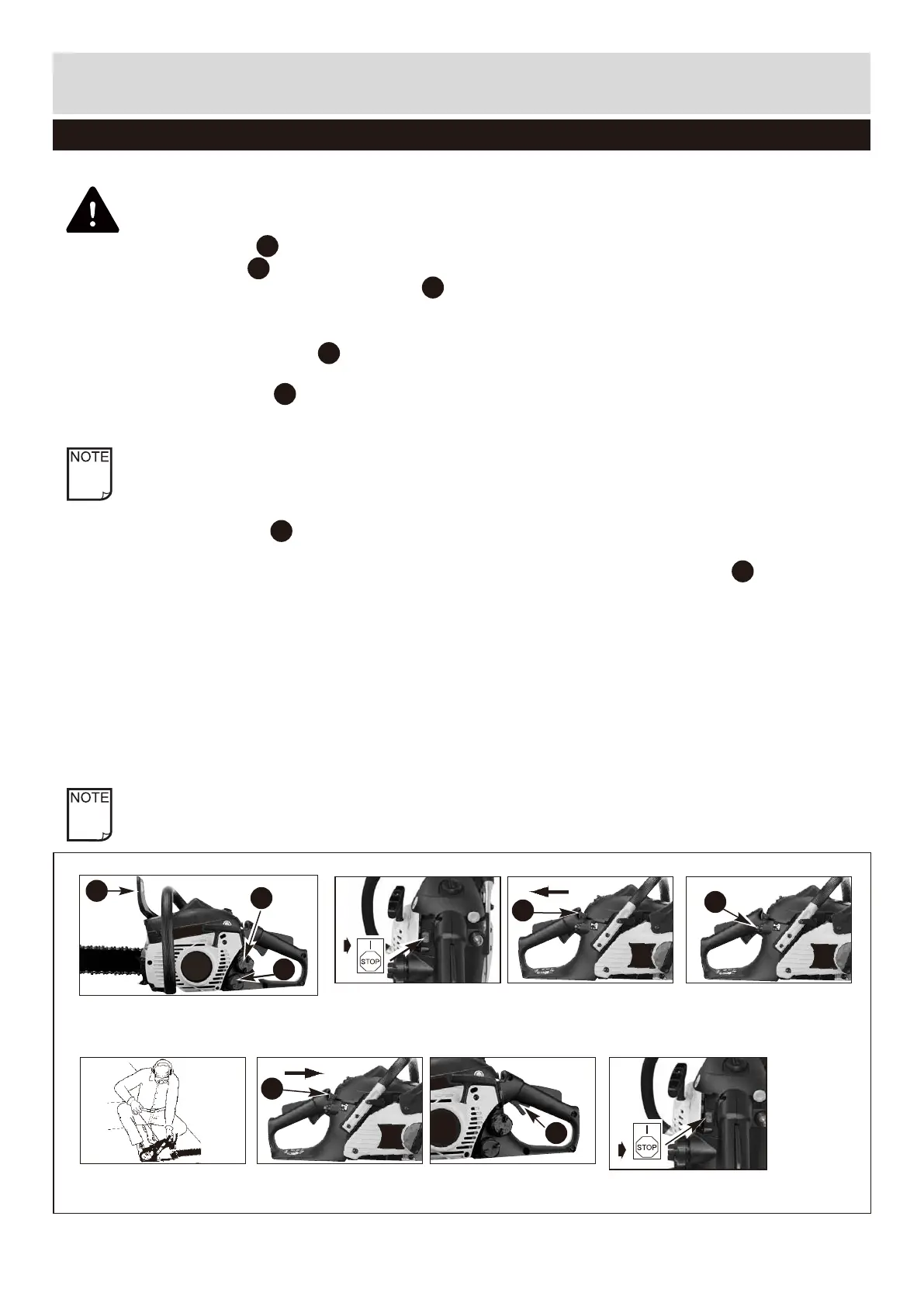 NOTE: For emergency stopping, simply activate CHAIN BRAKE and move STOP switch down. Please