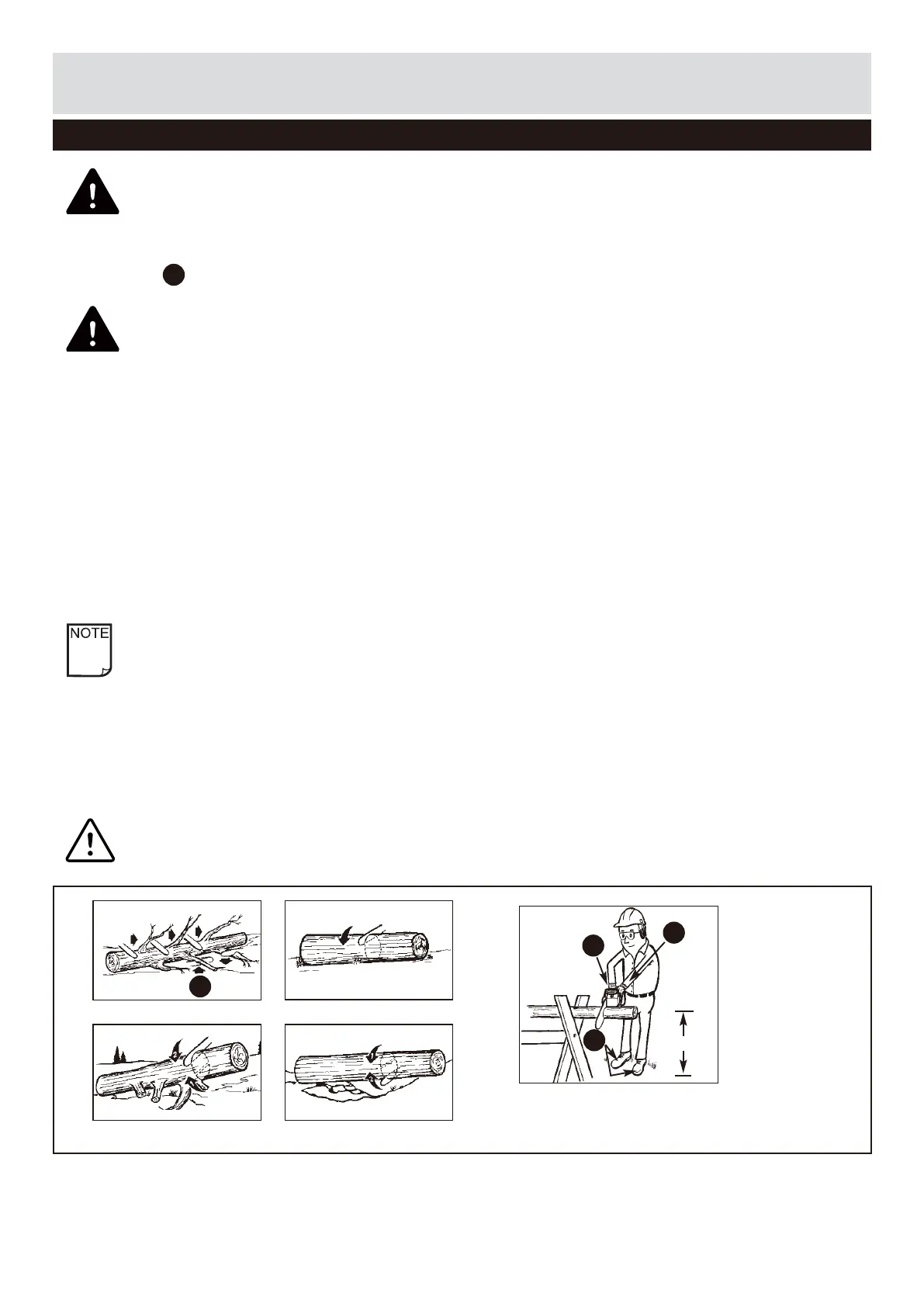 NOTE: The best way to hold a log while bucking is to use a sawhorse. When this is not possible, the