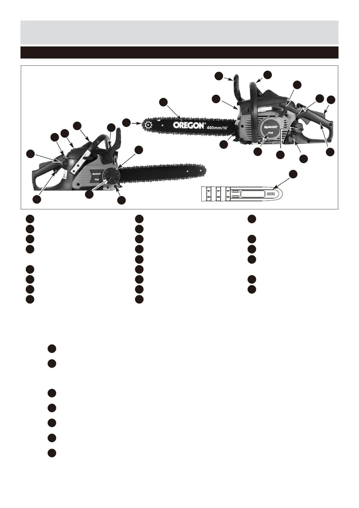 CHAIN BRAKE LEVER / HAND GUARD protects the operator’s left hand in the event it slips off