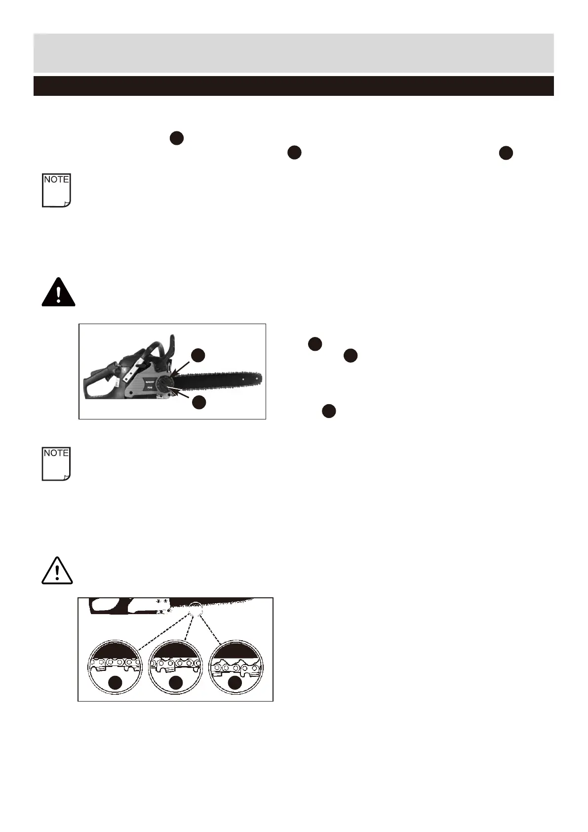 NOTE: If chain is difcult to rotate on guide bar or if it binds, too much tension has been applied.This