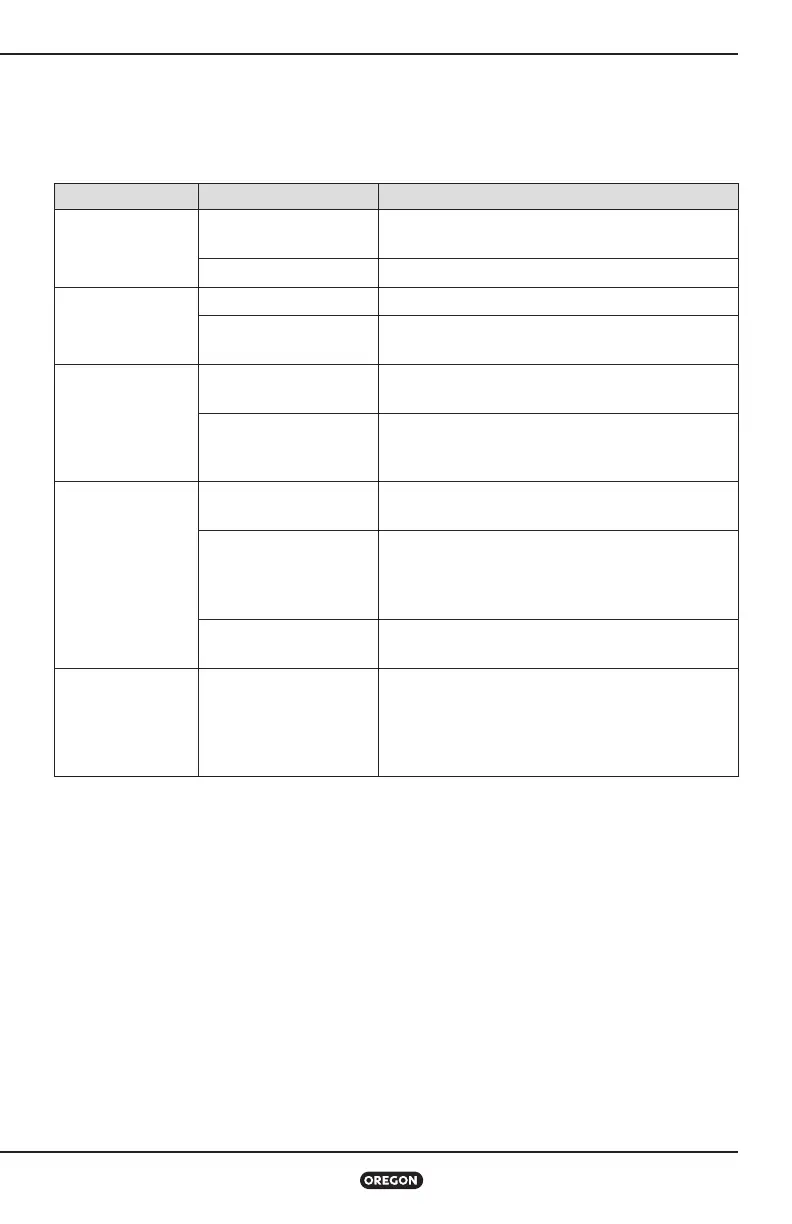 Use esta tabela para consultar as soluções possíveis para possíveis problemas com o seu podador de fio.